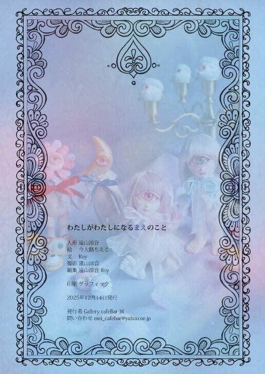人形、写真を遠山涼音さんが担当し、人形への模様と文章ページのレリーフを今大路ちえこさん、文をRoyが担当した共同制作の絵本です。
