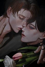 2026年3月8日~3月22日開催 古藤なぐ 個展「花と虫の遺骸の箱には」に出展されているメインビジュアルの油彩画作品です
